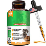 Multivitamin Supplement for Dogs & Cats – Flea & Tick Support, Skin Comfort & Strength – 2 fl oz (60ml) Liquid Drops